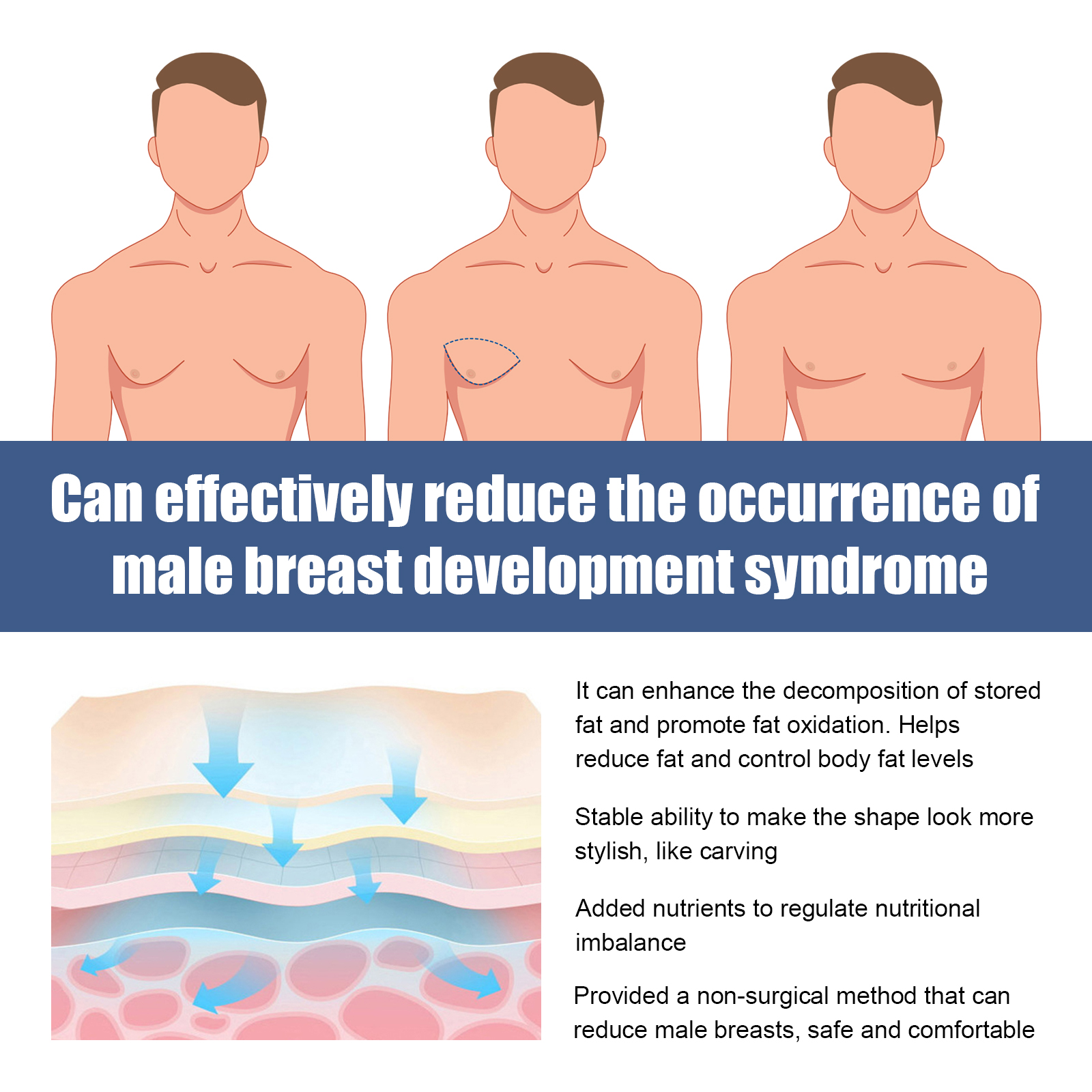 Our breast firming patch for men contains Yohimbe bark extract, ginger extract. It can promote the breakdown of stored fat, promote fat oxidation to help reduce fat and control fat levels in the body. Its use is simple: 1. Clean and dry the chest skin, 2. Open the package, remove the patch, 3. After gently pressing the patch on the chest for about 15 minutes, remove the patch. 4. Daily use can achieve better results. It also provides a safe and comfortable non-surgical way to reduce the size of men’s breasts.